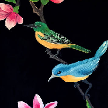 New York based Artist, Ji Na is an originally Sumi painter with her family background. Ji Na's inner passion and blended culture allowed her to extend the range of talent even further. She brought Asian brushstroke style to natual expressionism. The flowing style of nature with ink washing brushstroke. The harmony of natural power, the breath of life, the wind movement, the life of forms, the birth of color and fusion.